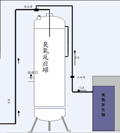 1.4氧化塔上端側部進水,下端側部出水,水自上而下流經(jīng)氧化塔,與氣相的臭氧氣泡形成逆流,提高混合效率。