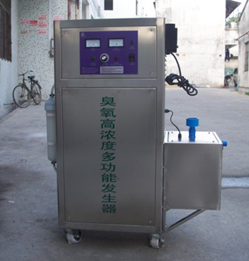 外接冷卻水的方法有兩種:直接連接自來水或用水箱+循環(huán)泵做一個循環(huán)利用的 水系統(tǒng)。下圖為外接冷卻水箱的40克臭氧發(fā)生器:
